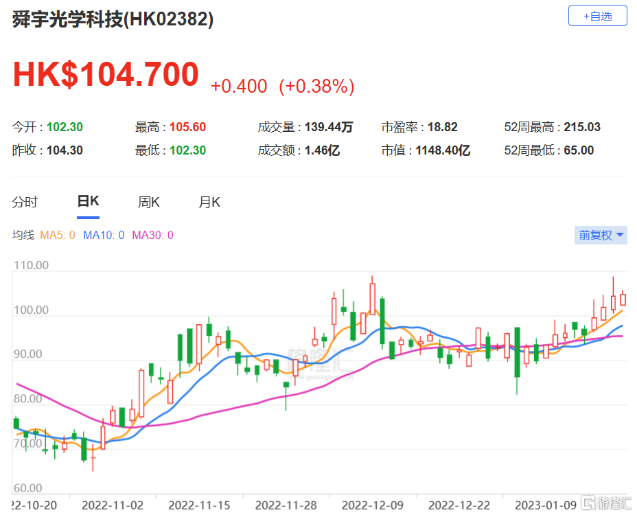 中长期来看,该行认为光学市场需求向好,预计智能手机光学规格稳步升级的趋势不改,看好公司光学龙头地位,预计公司2022至2024财年净利润各为30亿港元、45亿港元及58亿港元,每股盈利预测由原来的3.53港元、4.48港元及5.66港元,下调至2.76港元、4.08港元及5.25港元,维持对其“买入”评级,目标价122港元。